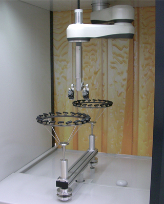 節(jié)省空間并控制無謂的涂料浪費,為小型部件噴涂專用而開發(fā)的小型噴涂機械手系統(tǒng)。